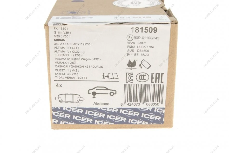 Колодки гальмівні (задні) Renault Koleos 08-/Nissan Qashqai/Tiida 07-13/Teana/X-Trail 01-13 ICER 181509 (410601408R, AY060NS030, AY060NS038)