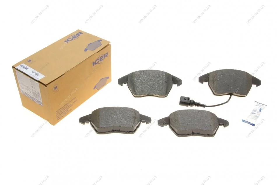 Колодки гальмівні (передні) Skoda Fabia/Rapid 10-/Octavia/VW Caddy 04-15/Golf/Passat 03- (+датчик) ICER 181567 (1K0698151, 1K0698151C, 1K0698151E)