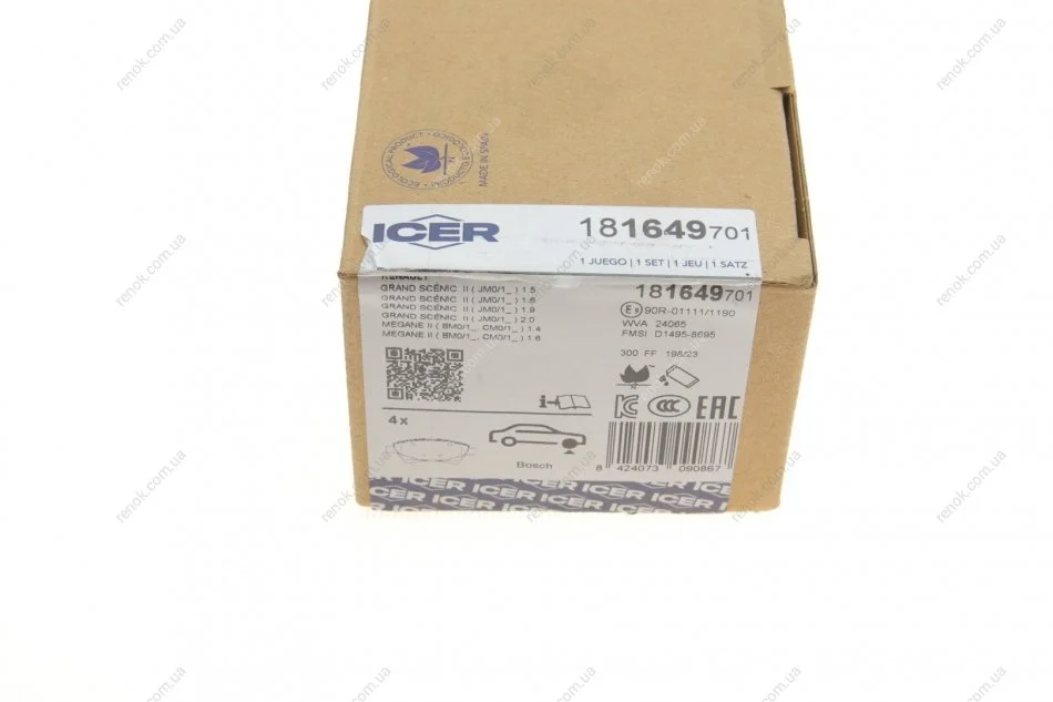 Колодки гальмівні (передні) Renault Megane II 03-/Scenic II 05-08/Grand Scenic II/III 04- ICER 181649-701 (7701209697, 7701208122, 7701207672)