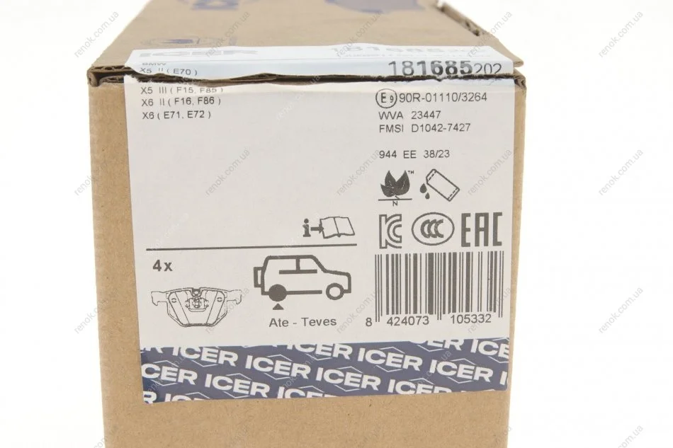 Колодки гальмівні (задні) BMW X5 (E70) 06-13/(F15/F85) 13-18/X6 (E71/E72) 08-14/(F16/F86) 14-19 ICER 181685-202 (34212413041)
