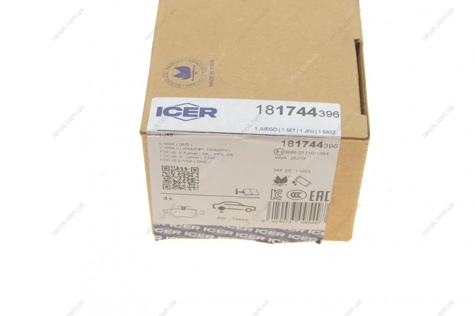 Комплект гальмівних колодок (дискових) ICER 181744-396 (1360306, 30736610)
