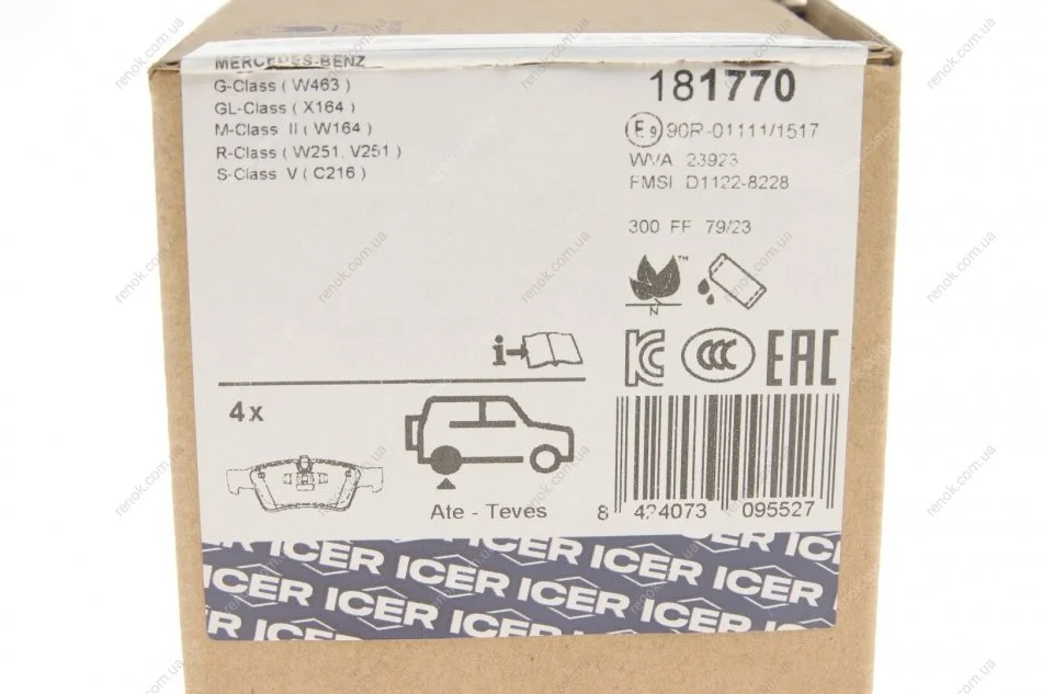 Колодки гальмівні (задні) MB M-class (W164)/R-class (W251)/GL-class (X164) 05-14/G-class (W463) 04- ICER 181770 (164420152095, 0004320430, 0044205220)