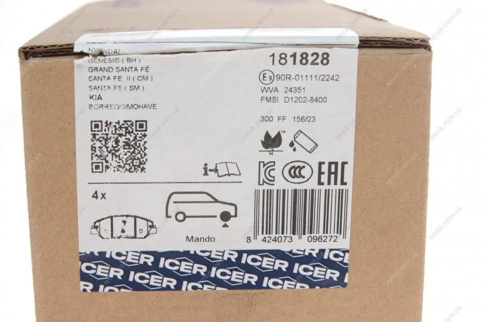 Колодки гальмівні (передні) Hyundai Santa Fe II/III/Genesis 06-/Kia Sorento/Ssangyong Korando 09- ICER 181828 (581012SA70, 48130341A0, 581010WA00)