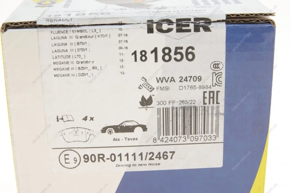 Колодки гальмівні (передні) Renault Megane III/Laguna III/Scenic III/Fluence 07- (WVA 24709/24710) ICER 181856 (410605055R, 410600011R, 410600311R)