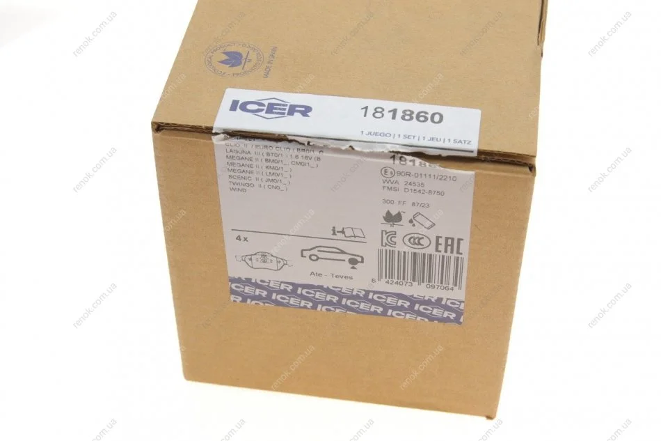 Колодки гальмівні (передні) Renault Laguna III/Clio III 06-15/Megane II/Scenic II 02- ICER 181860 (7711130086, 7701210127, 7701209670)