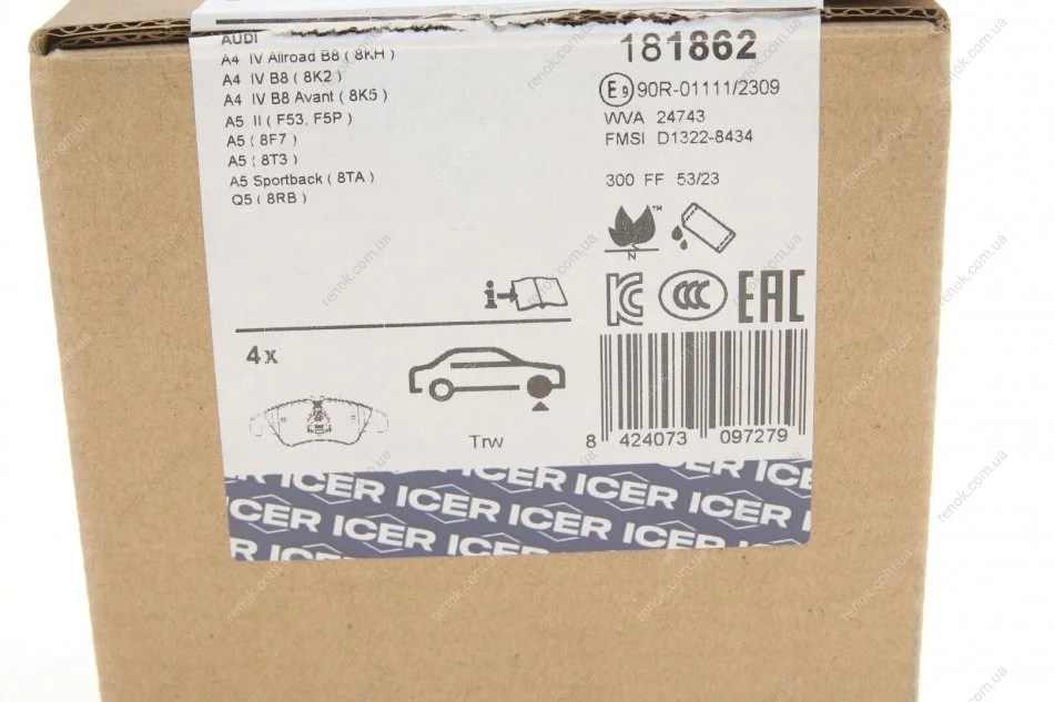 Колодки гальмівні (передні) Audi A4 07-18/A5 07-/Q5 13-17 (+датчик) ICER 181862 (4G0698151D, 4G0698151L, 4G0698151)
