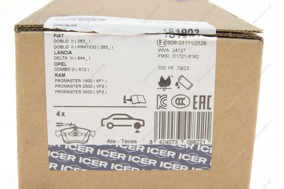 Колодки гальмівні (передні) Fiat Doblo 01-/10-/Opel Combo 12- (+датчики) ICER 181903 (1605164, 1605182, 77365311)