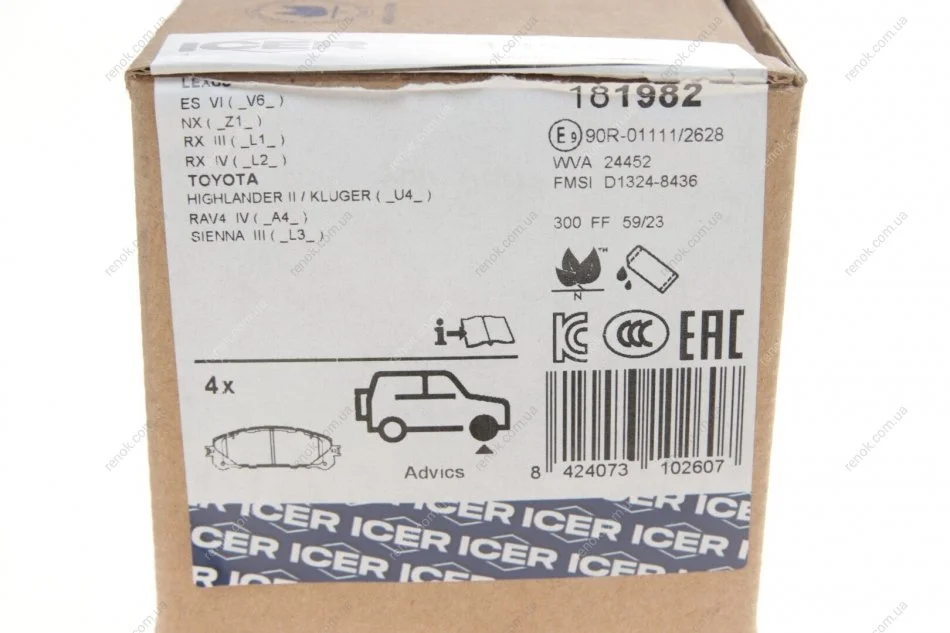 Колодки гальмівні (передні) Toyota Camry 17-/Highlander 07-/Rav4 IV/V/Lexus ES 12-/NX 14-/RX 08- ICER 181982 (044650E010, 0446548150, 0446548160)