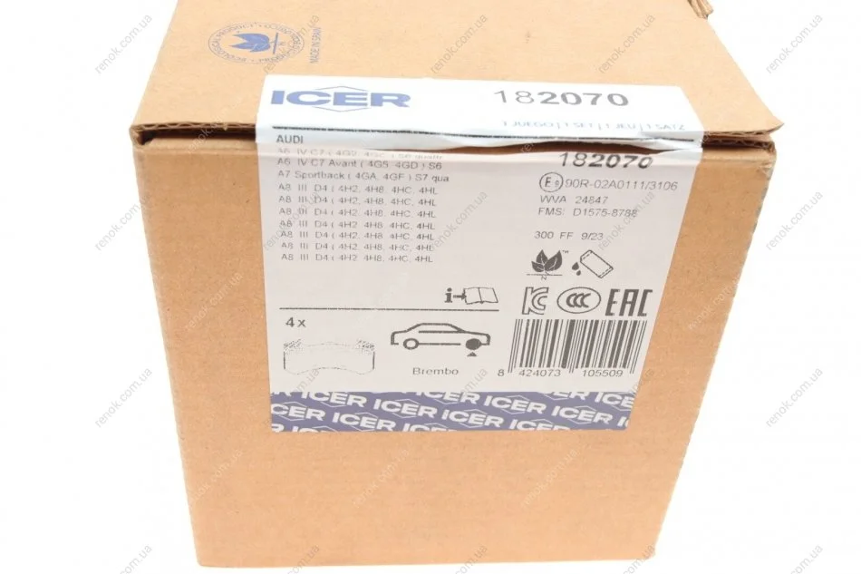 Колодки гальмівні (передні) Audi A6/A7/A8/Q5 10-/VW Jetta 08-10 ICER 182070 (4G0698151F, 4H0698151, 4H0698151F)