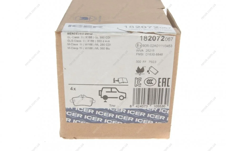 Комплект гальмівних колодок (дискових) ICER 182072-067 (0004208104, 0064204020, 0064204120)