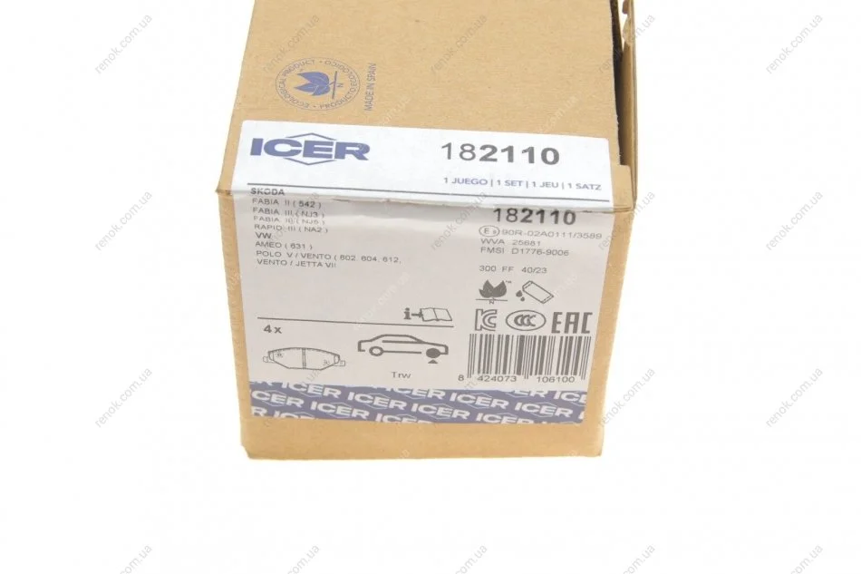 Колодки гальмівні (передні) Skoda Fabia II/III 07-/VW Polo 10- ICER 182110 (6RU698151, 6RU698151A, 6RU698151B)