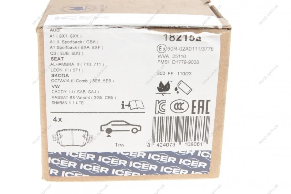 Колодки гальмівні (задні) Audi Q3/Skoda Octavia/Seat Leon/VW Golf/Sharan 12-/Passat B8/Caddy IV 14- ICER 182152 (5Q0698451B, 5Q0698451F, 8U0698451F)