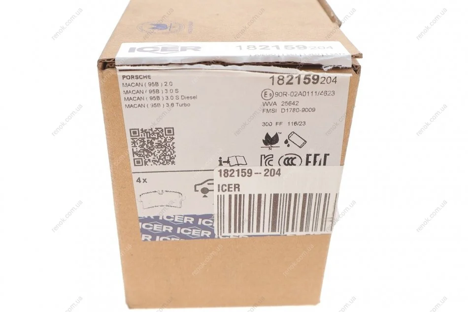 Комплект гальмівних колодок (дискових) ICER 182159-204 (95B698451, 95B698451A, 95B698451B)