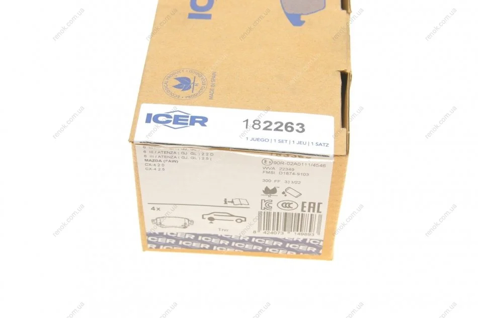 Колодки гальмівні (задні) Mazda 6 12-/CX-4/Chevrolet Trax 16- ICER 182263 (gmy02643za, gmy02643z)