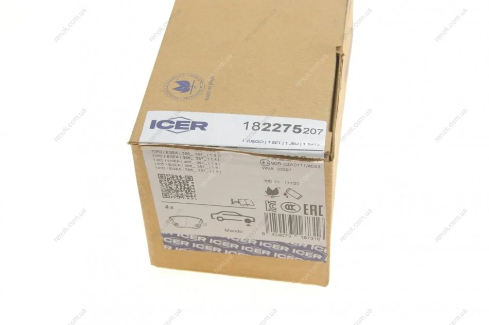 Комплект гальмівних колодок (дискових) ICER 182275-207 (77367628, 77367910)