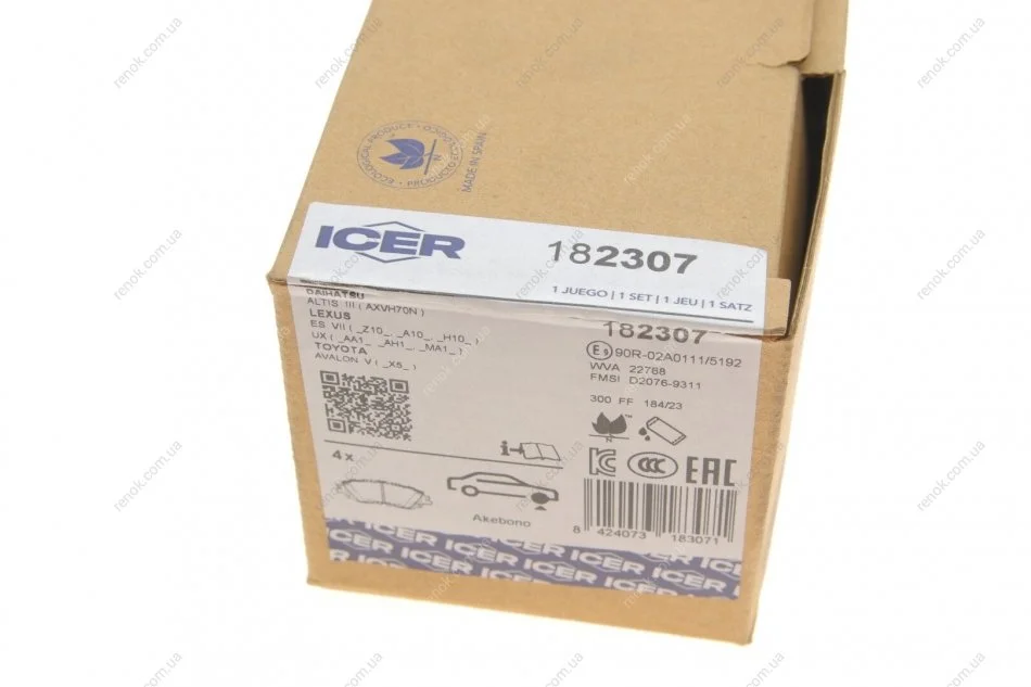 Колодки гальмівні (передні) Toyota Camry 17-/Rav4/Lexus ES/UX 18- ICER 182307 (0446576010, 0446506150, 044650E060)