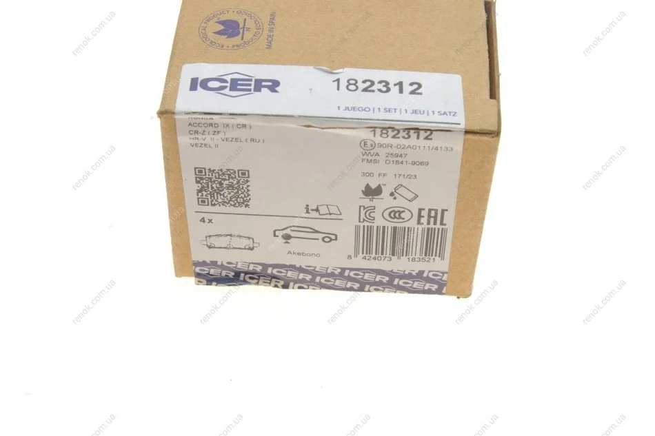 Комплект гальмівних колодок (дискових) ICER 182312 (43022T2JH00, 43022T2JH01, 43022T7JH01)