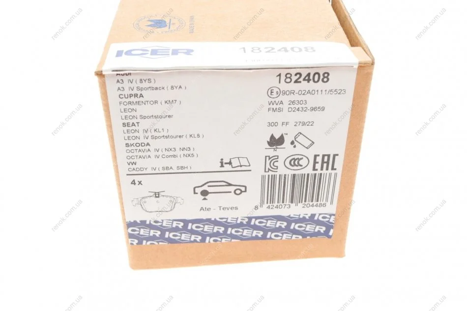 Колодки гальмівні (задні) Audi A3/Seat Leon/Skoda Octavia/VW Golf VIII 19-/Caddy 20- ICER 182408