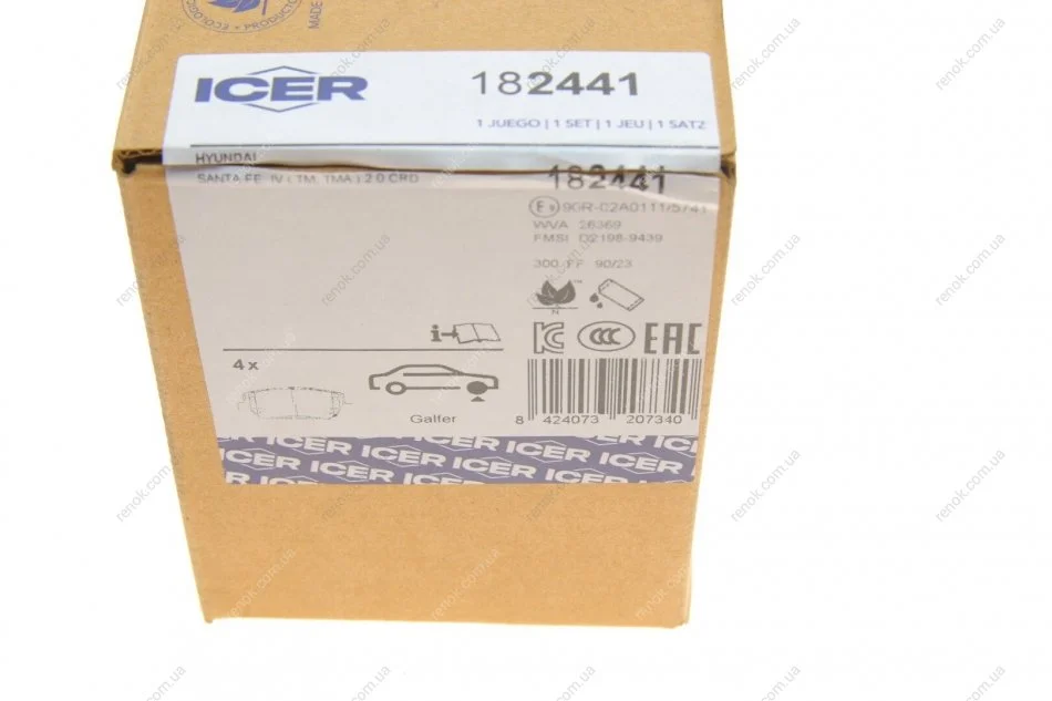 Колодки гальмівні (передні) Hyundai Santa Fe 18-20 ICER 182441 (58101S1A00)