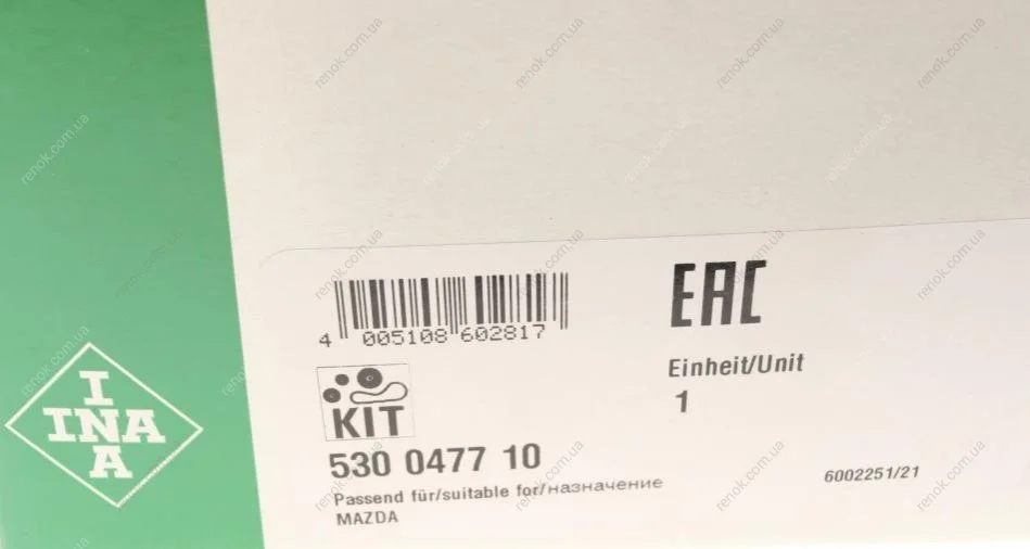 Комплект ременя ГРМ INA 530 0477 10 (rf2a12205c9a, rf2a12770a, rf5c12205)
