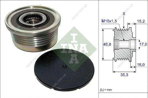 Шків генератора Renault Trafic II 1.9dCi/2.0 16V 03/01- / Duster 2.0 02/12-, (5PK) INA 535004810 (sconp0057, 2315100q0a, 7701477507)