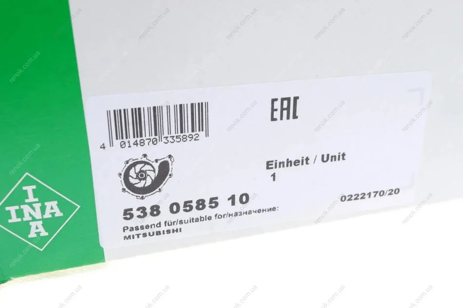 Помпа води Mitsubishi Pajero 3.5/3.8 00- INA 538 0585 10 (md977503, md979171)