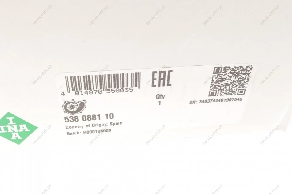 Насос системи охолодження INA 538 0881 10 (210102433R, 8200944976, 210105857R)