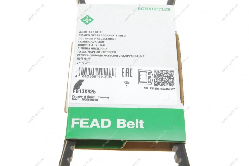 Ремінь генератора MB 609-817D (13x925) INA FB 13X925 (7700267321, 7700267945, 035260849G)