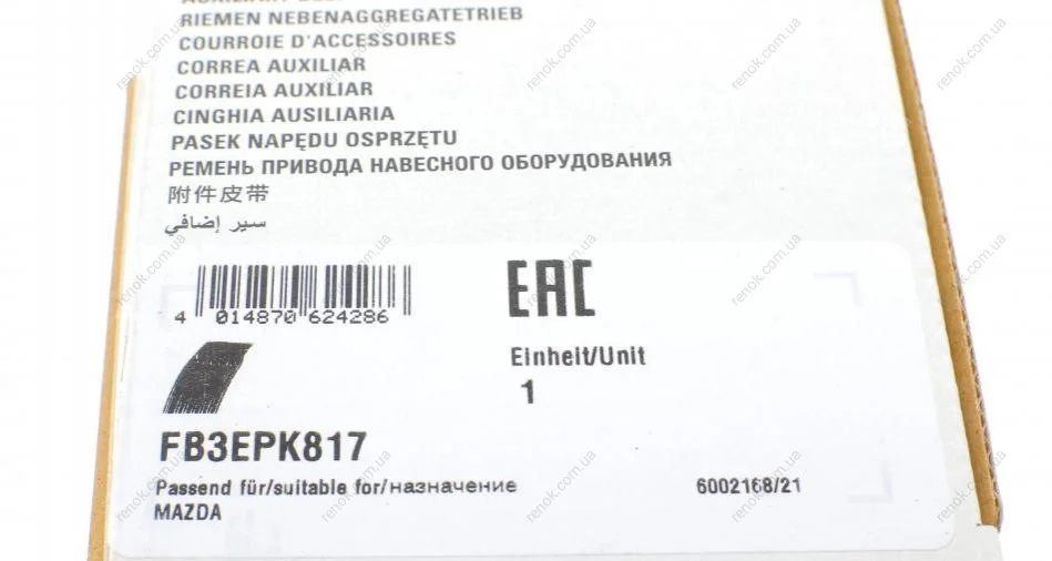 Ремінь генератора Mazda 6 2.0-2.5 13-16 (3PK817) INA FB 3EPK817