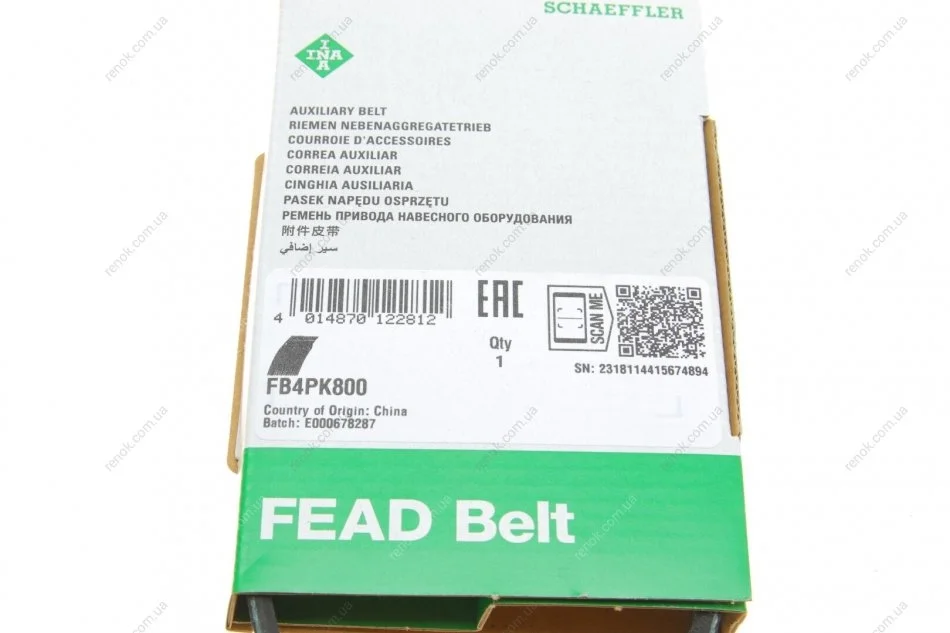 Ремінь генератора Honda Civic VI/Nissan Primera/Citroen Berlingo 1.4-1.6 16V 94-05 (4PK800) INA FB 4PK800 (9936400800, 71742126, 31110P2A003)