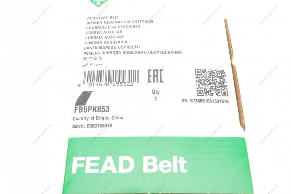 Ремінь генератора Citroen Berlingo/Honda Civic/Mazda 323/626 INA FB 5PK853 (119200552R, 96046092, 31110RB0G00)