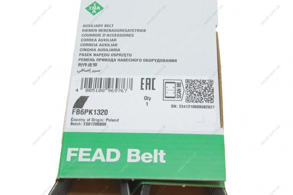 Ремінь генератора поліклиновий INA FB 6PK1320 (55185078, 6340616, 9514184EA0)