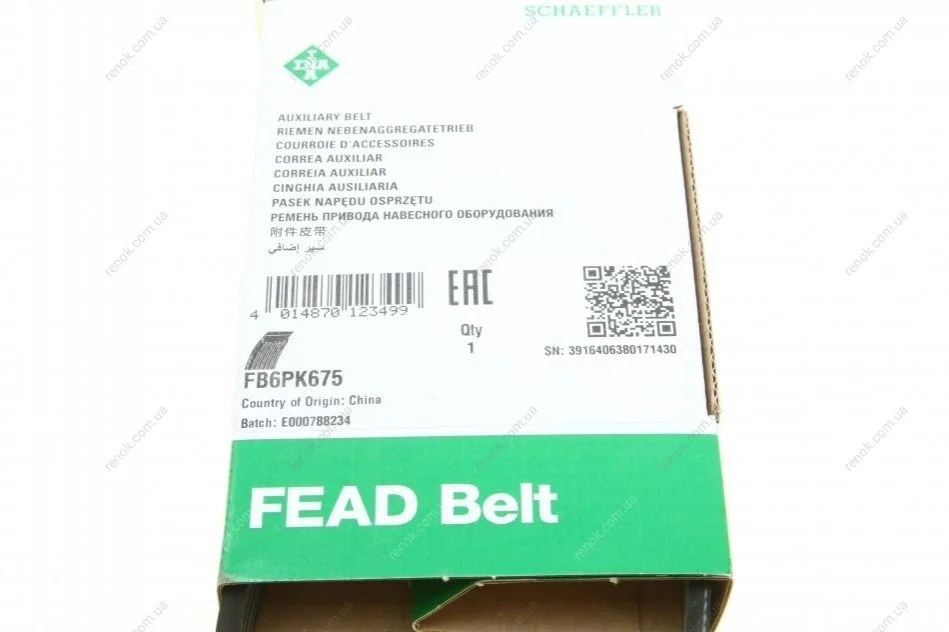 Ремінь генератора Nissan Micra 1.0-1.4i 16V 92-03 INA FB 6PK675 (117201F700, 117204F100, 1172054B00)
