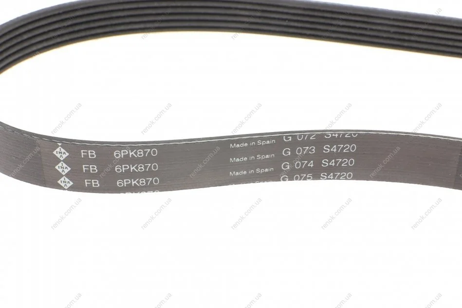 Ремінь генератора поліклиновий INA FB 6PK870 (7700743548, 8200059425, 5750S1)