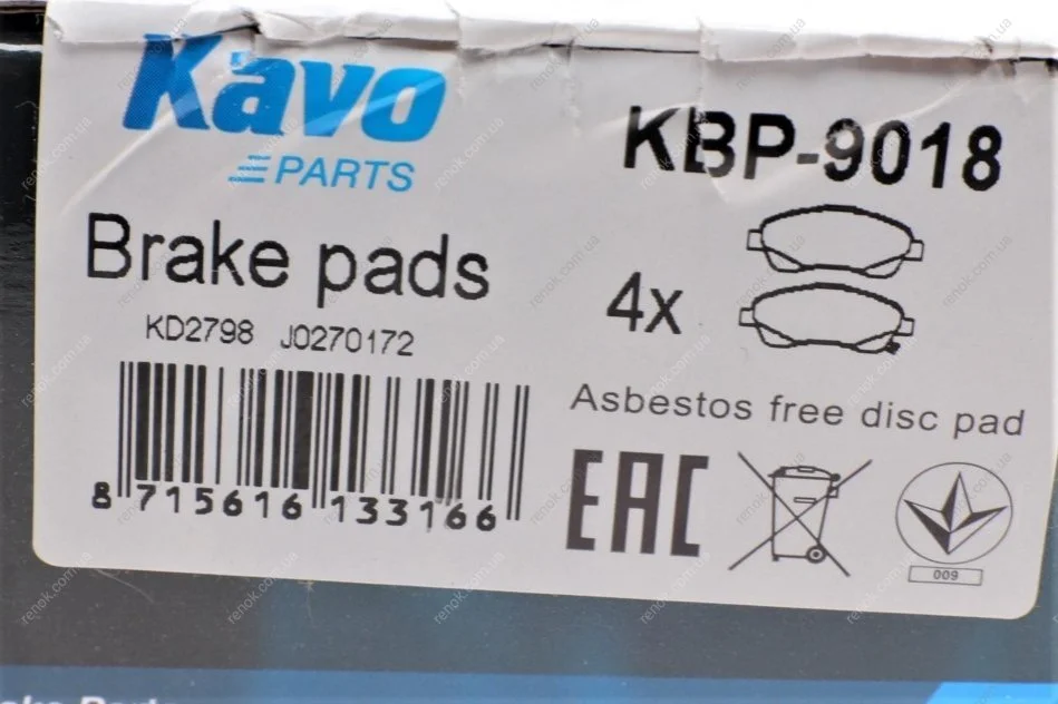 Колодки гальмівні (передні) Toyota Avensis 03-08/Corolla 00-08 KAVO KBP-9018