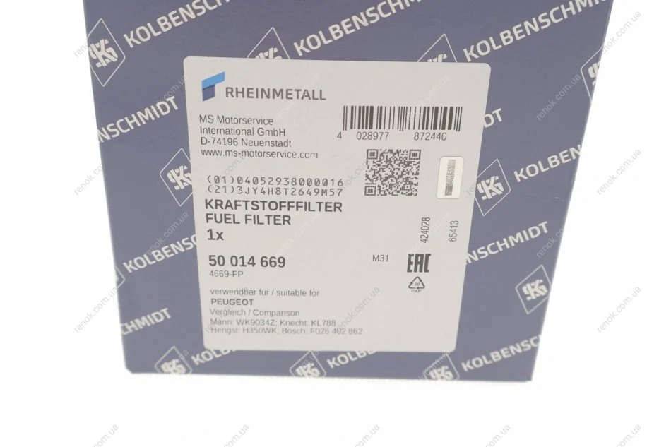Фільтр паливний Berlingo/Partner 1.6HDi 10- KOLBENSCHMIDT 50014669 (1906E6, 190600000)