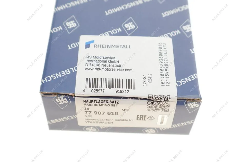 Вкладиші корінні Audi A3/A4/A5 1.8/2.0TFSI 04-16/VW Golf/Passat 1.8/2.0TSI 04-14 (+0.25) KOLBENSCHMIDT 77907610