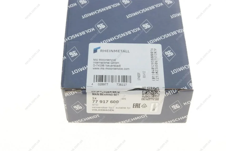 Вкладиші корінні VW Polo 1.2 01- (STD) (к-кт) KOLBENSCHMIDT 77 917 600