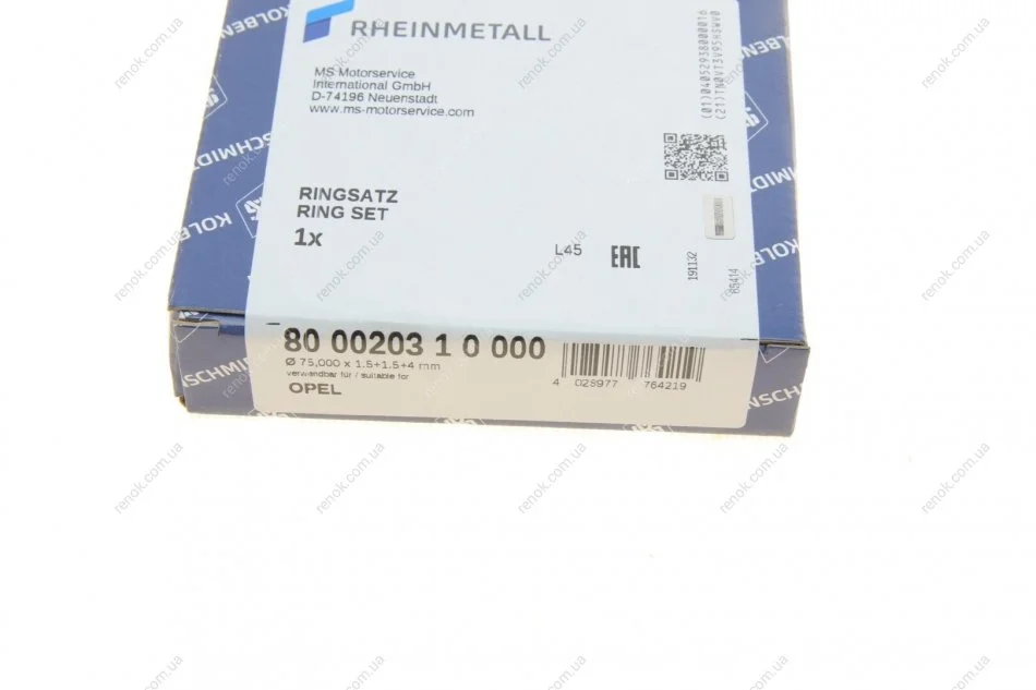 Кільця поршневі Opel Corsa A 1.3i 82-90 (75.00mm/STD) (1.5-1.5-4) KOLBENSCHMIDT 800020310000