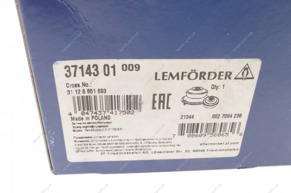 Аналоги "37143 01 LEMFORDER":