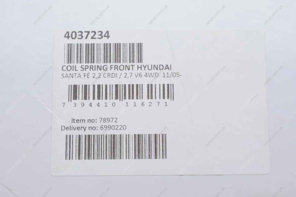 Пружина (передня) Hyundai Santa Fe II 2.2CRDi/2.2CRDi 4x4/2.7 4X4 06-09 (позашляховик) LESJOFORS 4037234 (546302B410, 546302B400, 546302B420)