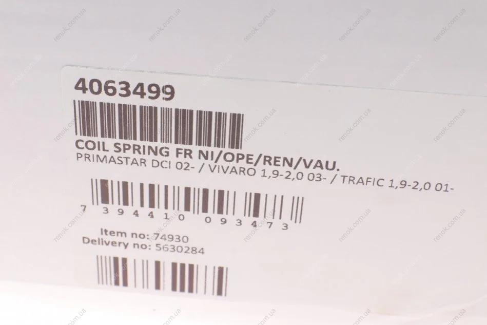 Пружина (передня) Opel Vivaro 1.9DTI/2.0 16V/Renault Trafic 1.9dCi/2.0/16VdCi/Nissan Primastar 01- LESJOFORS 4063499 (4411803, 91169478, 93855930)