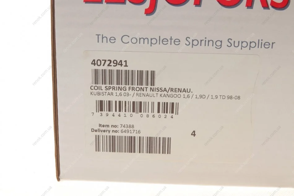 Пружина (передня) Renault Kangoo 1.6 16V/1.9dTi/1.9/1.9dCi 97- (вен/фургон) LESJOFORS 4072941 (7700311494, 8465299, 8200666436)