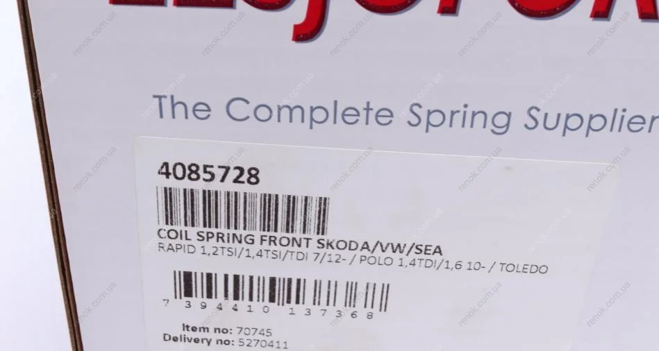 Пружина (передня) Skoda Fabia III 1.4TDI 14-/Rapid 1.2-1.4TSI/1.6 АКПП 12-/VW Polo 1.6 (+AC) 10- LESJOFORS 4085728 (6R0411105D)