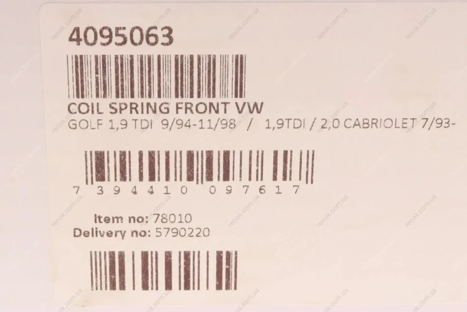 Пружина (передня) VW Golf III/Vento 1.9TDI 94-99 (нах.зад.частина/універсал/седан) LESJOFORS 4095063 (1H9411105G, 1H9411105)