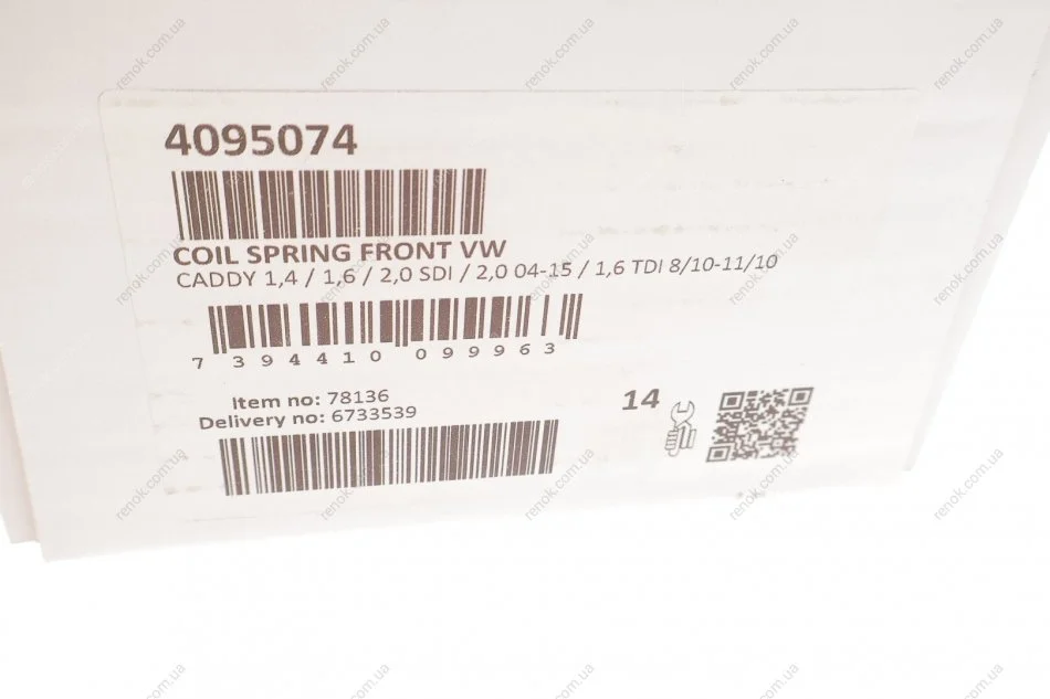 Пружина (передня) VW Caddy III 1.4/1.6/2.0Ecofuel/2.0SDI 04-15 (фургон/вен) LESJOFORS 4095074 (1K0411105EG, 1K0411105EH, 1K0411105EF)