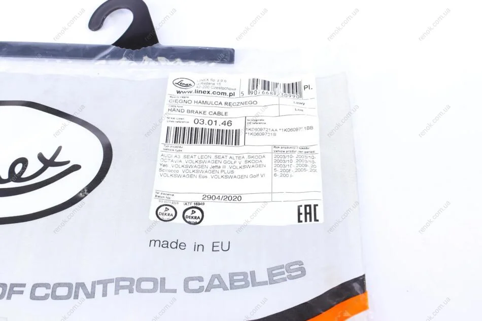Трос ручного гальма LINEX 03.01.46 (1K0609721AA, 1K0609721S, 1K0609721BB)