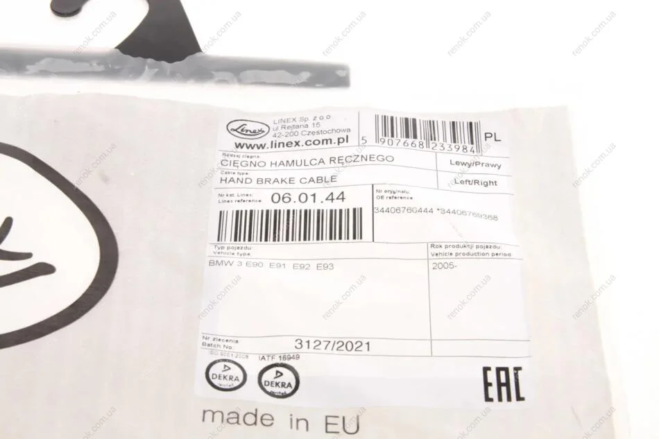 Трос ручного гальма LINEX 06.01.44 (34406760444, 34406769368)
