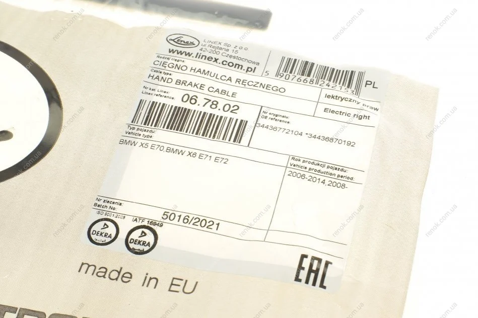 Трос ручного гальма LINEX 06.78.02 (34436772104, 34436870192)