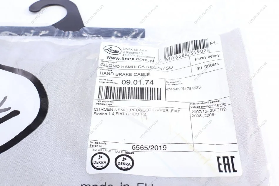 Трос ручного гальма LINEX 09.01.74 (474643, 51784533)